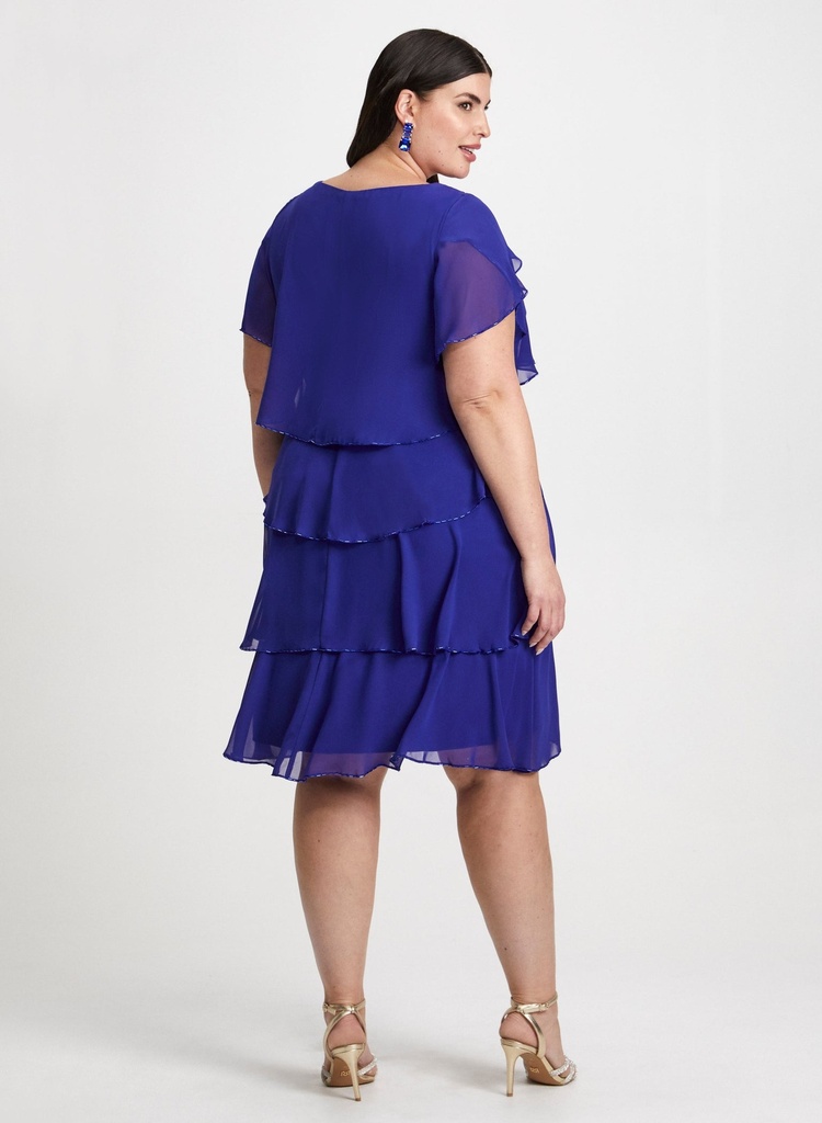 Ligero y original, nuestro vestido a capas tiene un corte favorecedor y dinámico. ¡Con aretes brillantes, estarás lista para bailar!
